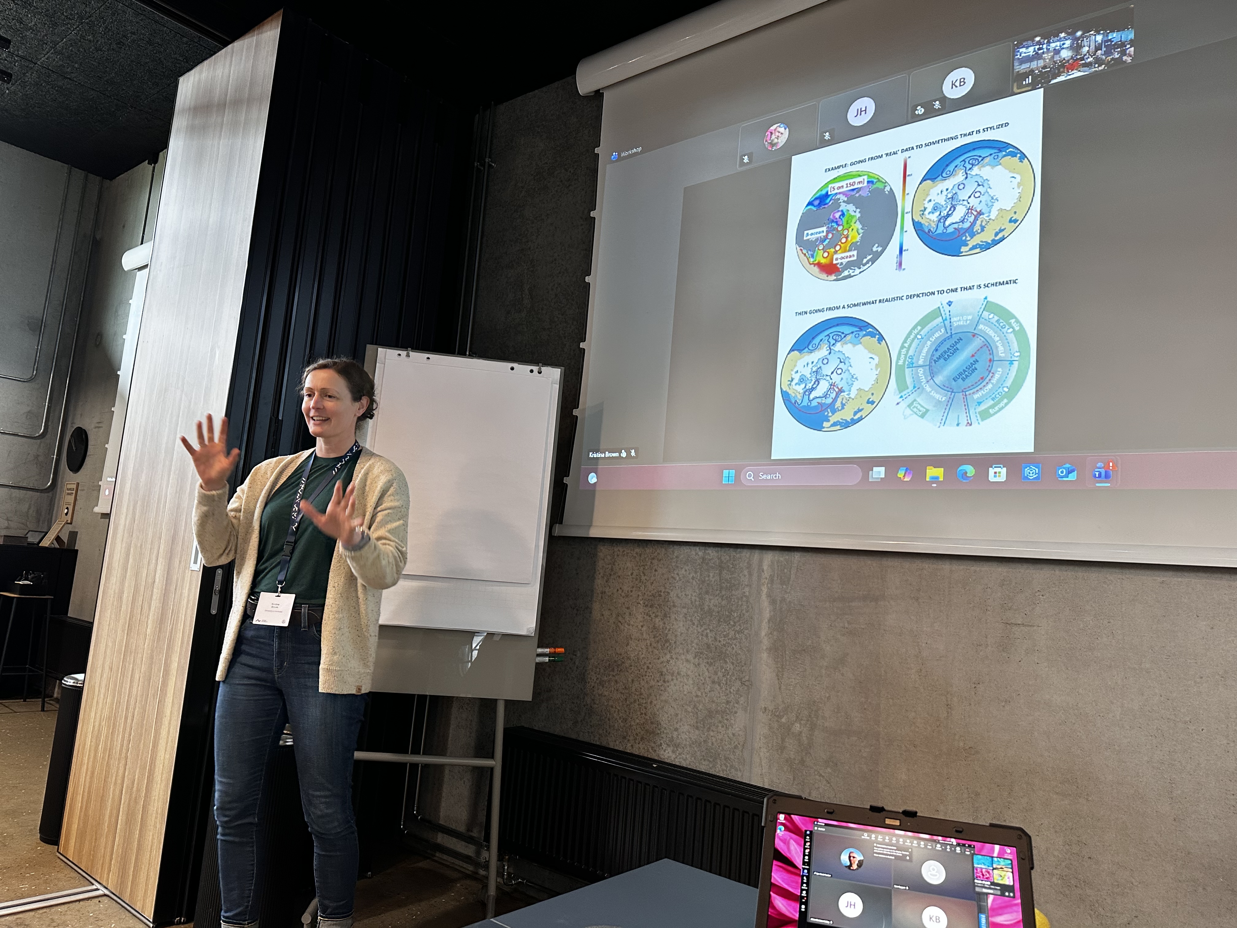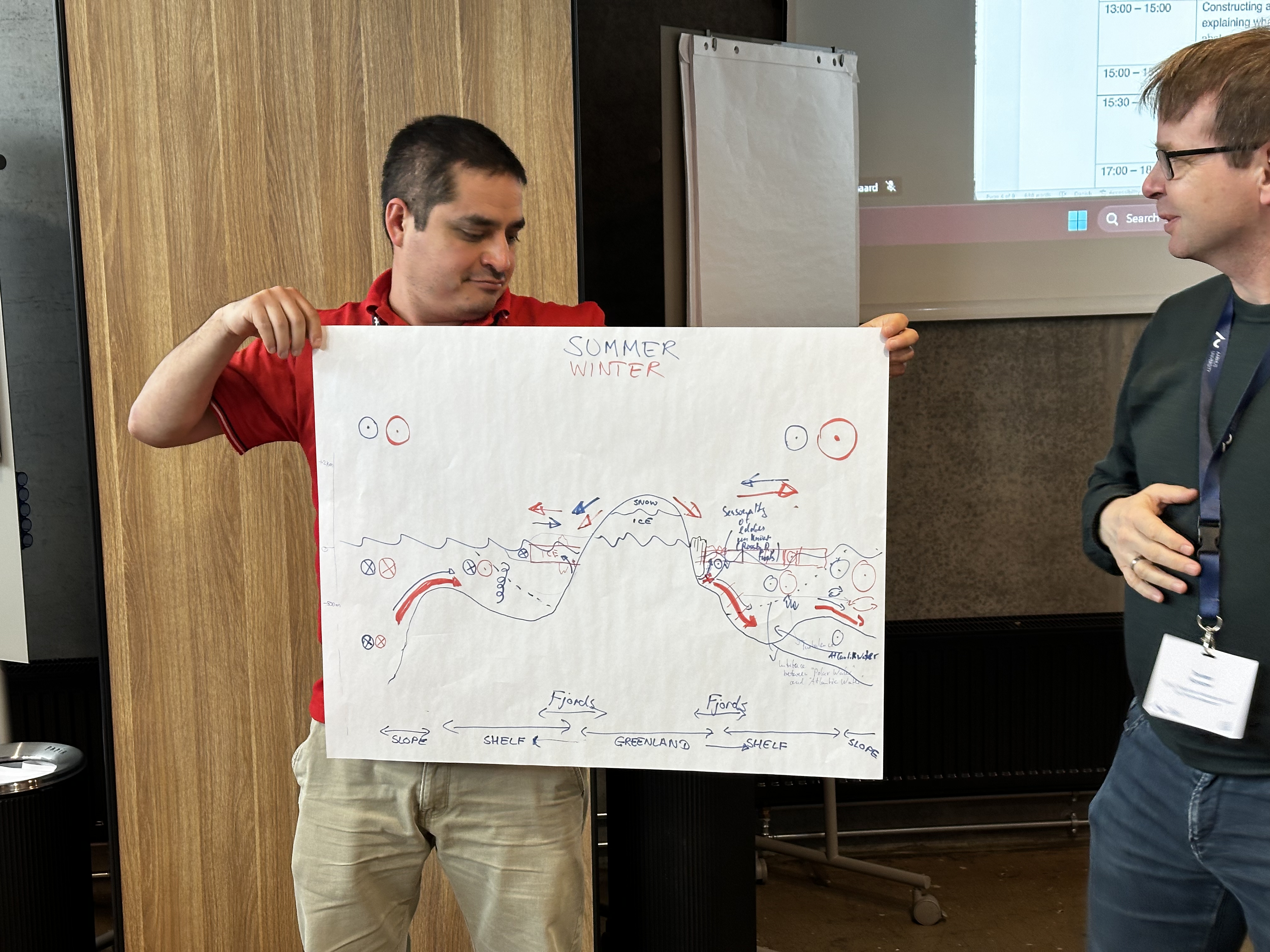 Participants worked to map seasonal heat and freshwater budgets, identify critical data gaps, and examine interactions spanning glaciers and fjords to the open ocean. Through discussions and breakout groups, interdisciplinary knowledge was integrated into a shared conceptual framework, resulting in a clear, high-level synthesis of the importance of these coupled Arctic systems for climate-land-ice-ocean dynamics.