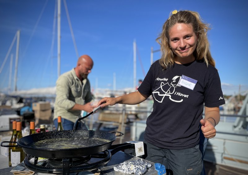 Fredag aften får vi levende fisk fra de lokale fritidsfiskere. Vi laver 10 store og små rørebassiner med forskellige slags fisk, rejer, tang, vandmænd – you name it. Master-chef kokken Thomas disker op med super, super lækre smagsprøver af ingredienser fra havet. Ved siden af Thomas står firmaet Dansk Tang viser frem af den tang, de dyrker og de tang-produkter, de sælger. Og Herslev Bryghus serverer gyldne dråber til de voksne mens både børn og voksne tager del i fællesdansen på kajen til både salsamusik og folkemusik.