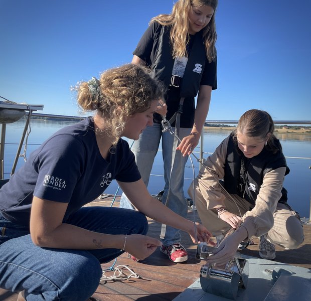 Vi tager prøver af havbunden og kigger på de dyr, der måske lever dernede. Og vi tager vandprøver, måler salinitet og temperatur og drøfter lagdelingen i de danske farvande og hvordan den øger risikoen for iltsvind. Og vi sender et kamera ned til havbunden, så børnene kan se, hvordan der ser ud ved bunden.